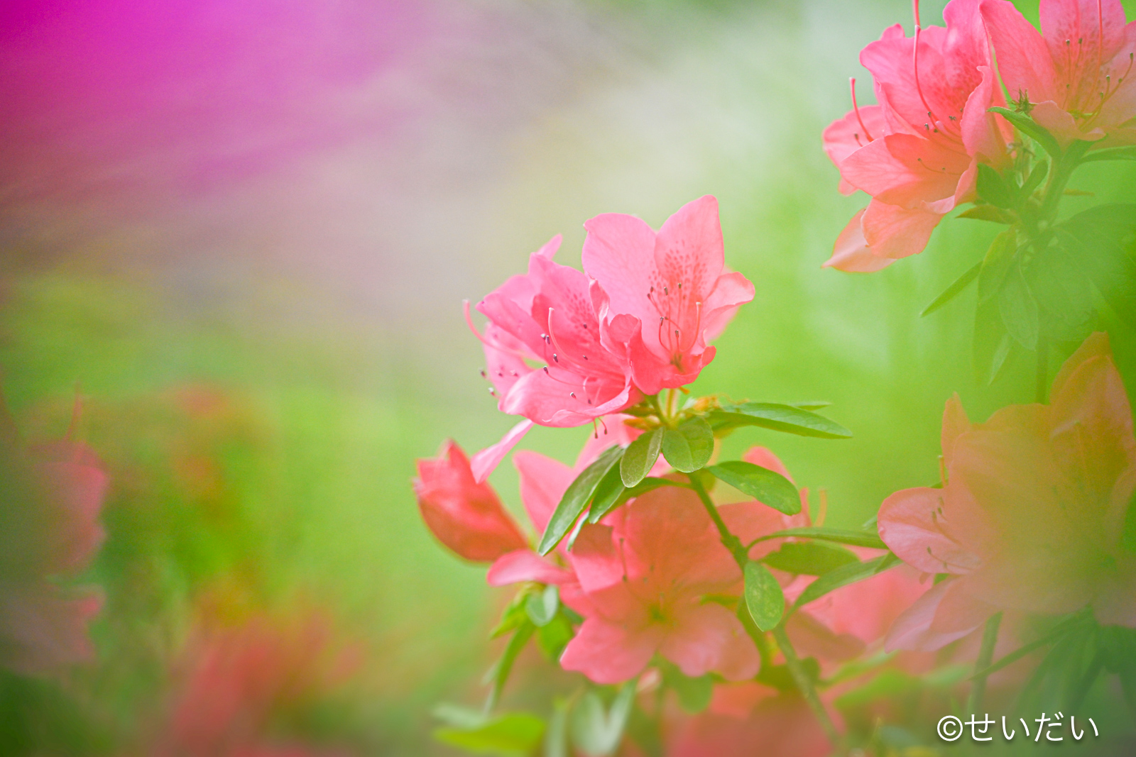 ツツジ 2025.05.02 ツツジはどこにでも咲いている身近な花です。身近な花を魅力的に撮ることを目指していますので、ツツジは大事なモチーフです。白いツツジ以外はおしべの数が5なのでツツジの中でもサツキと思われます。